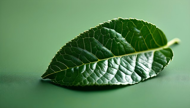 一片绿色的叶子,背景为浅绿色,展现自然之美。