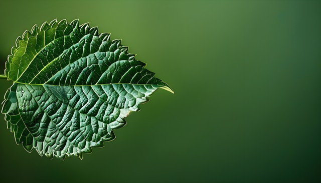 一片绿色的叶子,背景为浅绿色,展现自然之美。