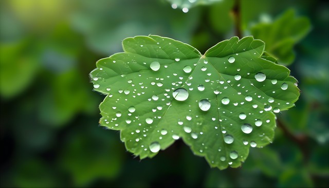 绿叶上的露珠,清晨的自然美景