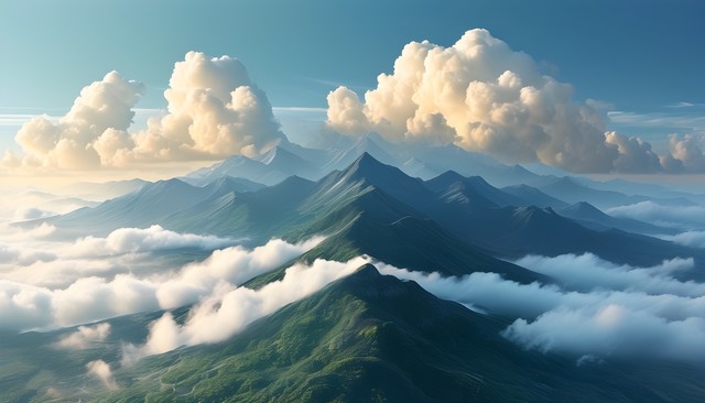 色彩斑斓的山脉,云朵缭绕,展现自然的壮丽景色。