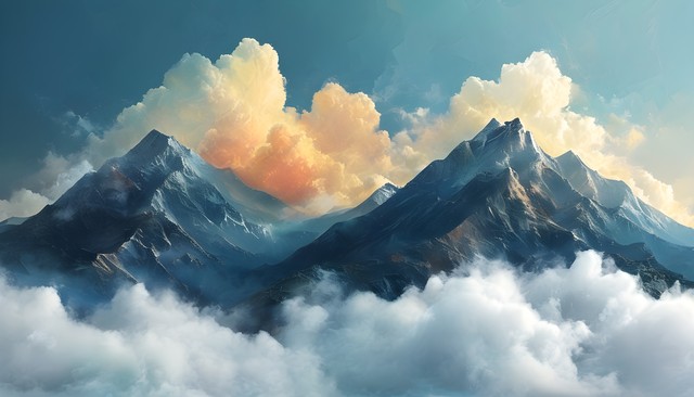 色彩斑斓的山脉,云朵缭绕,展现自然的壮丽景色。