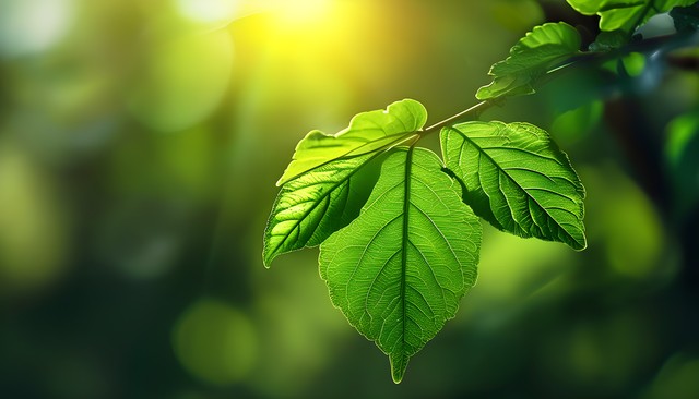 阳光照耀下的绿叶,展示出自然的生命力与美丽。