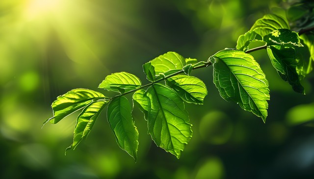 阳光照耀下的绿叶,展示出自然的生命力与美丽。
