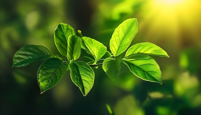 阳光照耀下的绿叶,展示出自然的生命力与美丽。