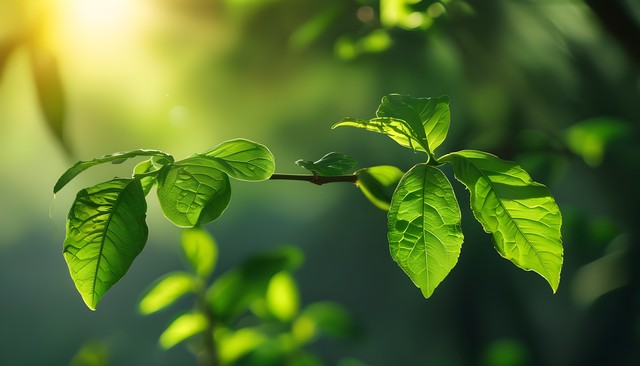 阳光照耀下的绿叶,展示出自然的生命力与美丽。