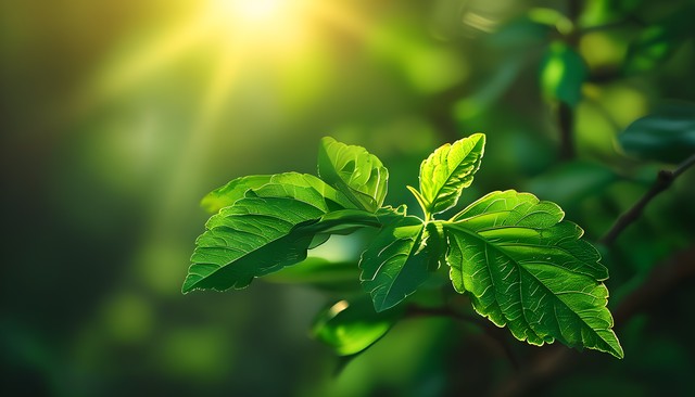阳光照耀下的绿叶,展示出自然的生命力与美丽。