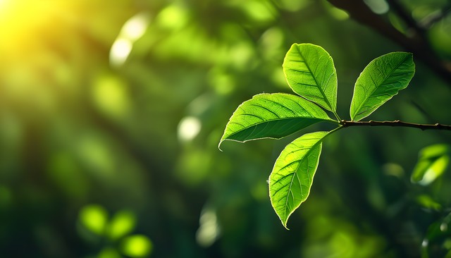 阳光照耀下的绿叶,展示出自然的生命力与美丽。