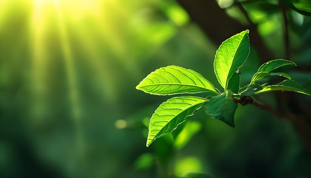 阳光照耀下的绿叶,展示出自然的生命力与美丽。