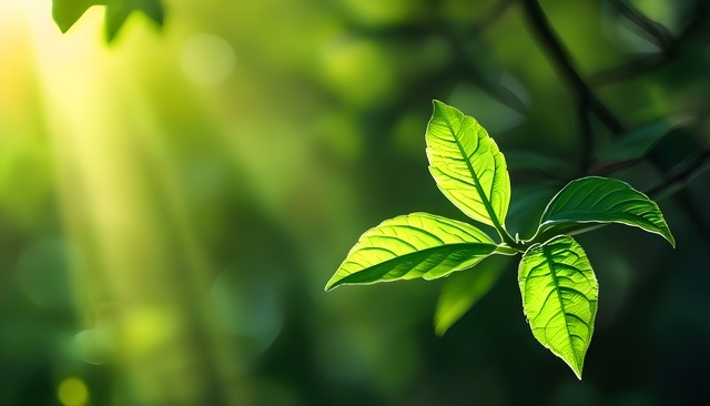 阳光照耀下的绿叶,展示出自然的生命力与美丽。