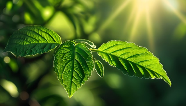 阳光照耀下的绿叶,展示出自然的生命力与美丽。