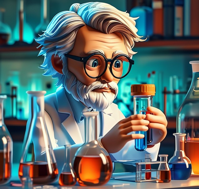 卡通盲盒风格,描绘一个科学家在实验室中专注地研究生物医药药物的场景。