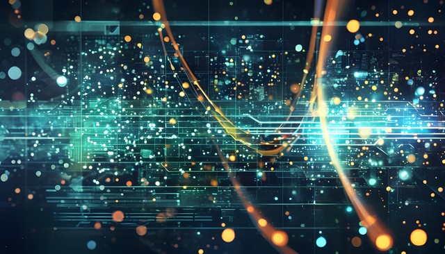 未来科技感十足的背景,呈现出光点和几何图形的梦幻效果。
