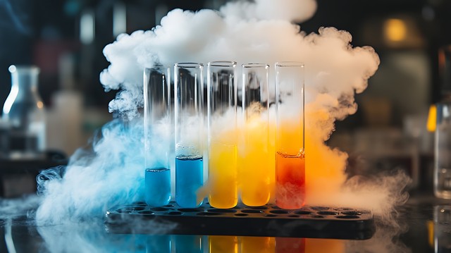 实验室中的气体分离实验,色彩斑斓的气体漂浮在空气中。