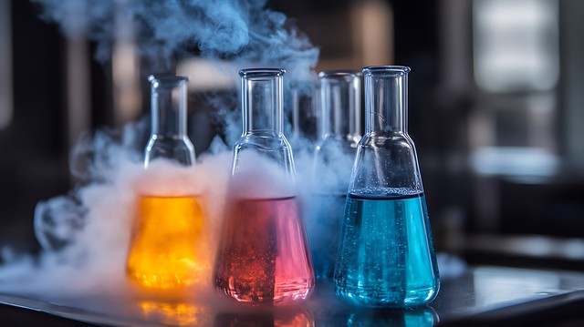 实验室中的气体分离实验,色彩斑斓的气体漂浮在空气中。