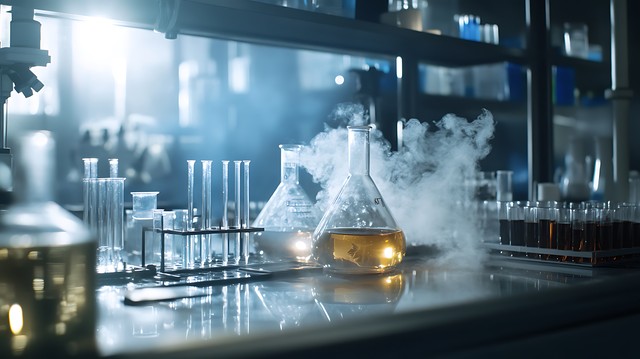 生化实验室,精密的仪器和试管交叠,诠释科学的无限可能。
