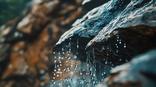 刚刚下过雨,悬崖的岩石上挂满了水珠,清新的景象令人心旷神怡。