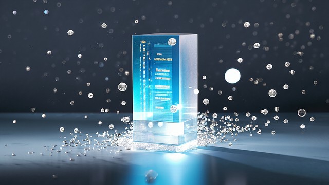 透明水晶,水晶内部映射出全球股市指数的动态影像。
