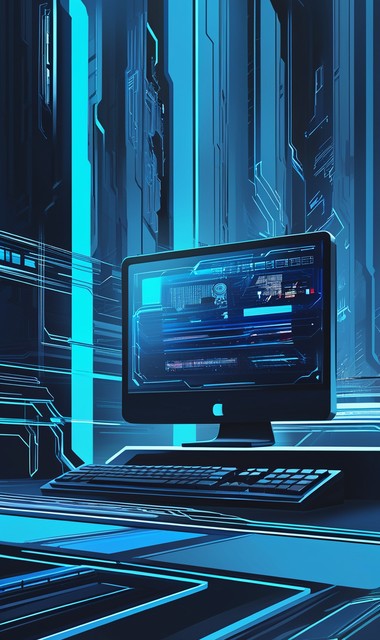 科幻,动态线条矢量插图。高科技数字技术概念。蓝色背景下的高计算机技术插图。抽象的未来主义设计。
