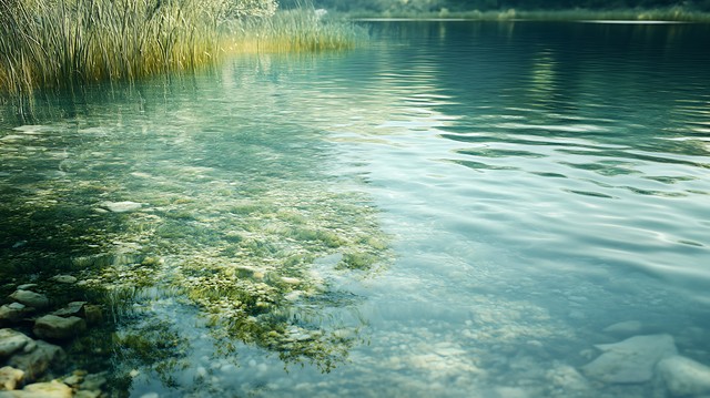 清澈的湖面倒映着周围的植被,形成一个梦幻的自然画面。