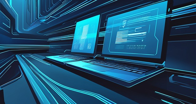 科幻,动态线条矢量插图。高科技数字技术概念。蓝色背景下的高计算机技术插图。抽象的未来主义设计。