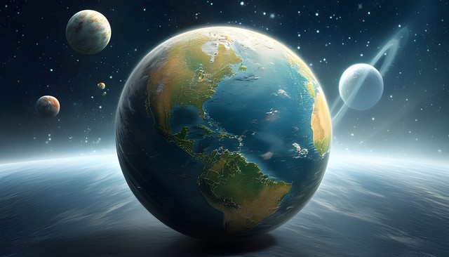 地球与火星在太空中的唯美景象,呈现出奇幻的宇宙景观。