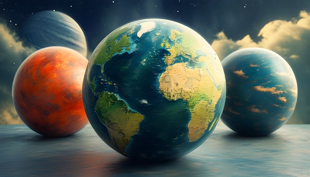 地球与火星在太空中的唯美景象,呈现出奇幻的宇宙景观。