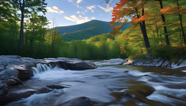 日出时分,郁郁葱葱的山脉与岩石,展现出自然的壮丽景色。