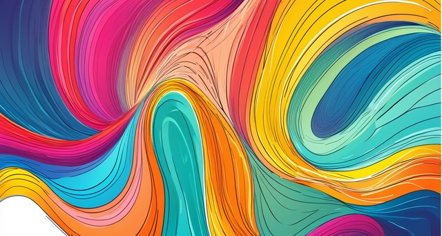 带有彩色线条和线框图的抽象波浪背景。手绘矢量。