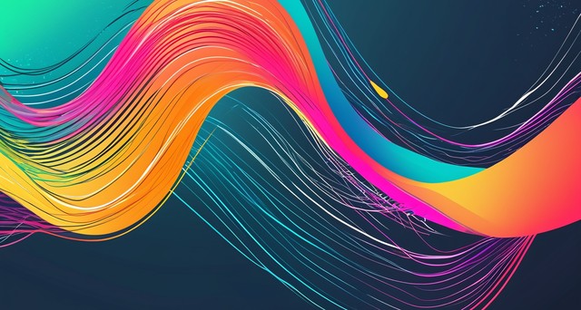 带有彩色线条和线框图的抽象波浪背景。手绘矢量。