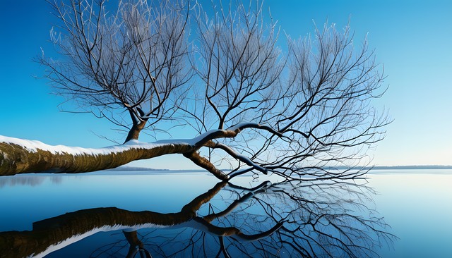 冬天光秃的树枝在蓝天的映衬下,展现出自然的美丽与宁静。