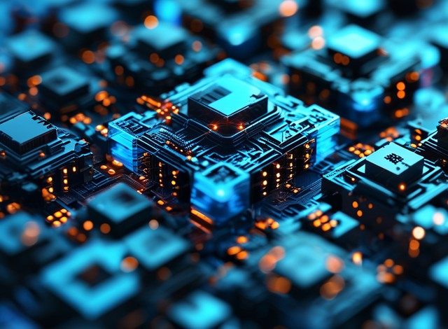 蓝色背景下的互连数字块技术
