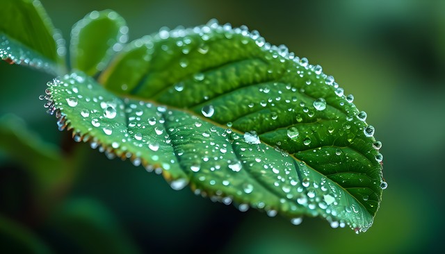 清晨露珠覆盖的绿叶,展现出自然的生机与美丽。