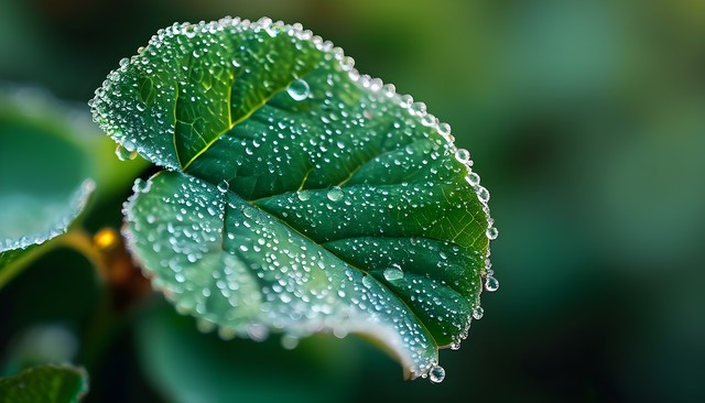 清晨露珠覆盖的绿叶,展现出自然的生机与美丽。