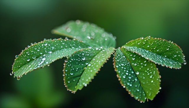 清晨露珠覆盖的绿叶,展现出自然的生机与美丽。