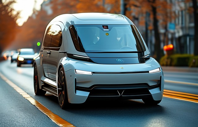 城市公路上自动驾驶的电动车——汽车自动驾驶激光雷达概念