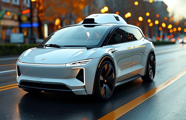城市公路上自动驾驶的电动车——汽车自动驾驶激光雷达概念
