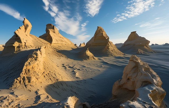 新疆乌尔禾的魔鬼城历经亿万年的风雨剥蚀,大自然的鬼斧神工形成了千奇百怪、形象各异的风蚀地貌。