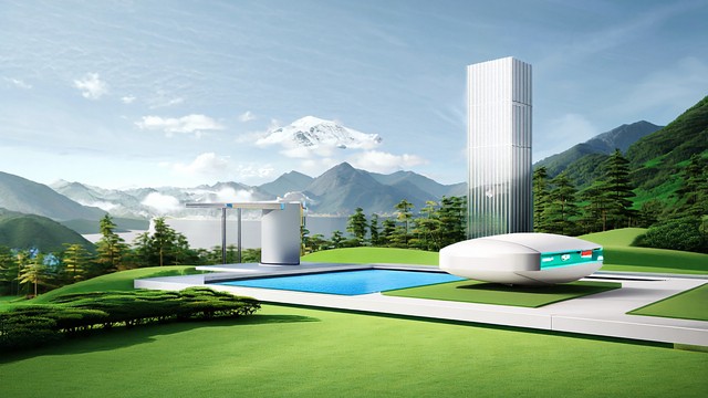 自然美景与高科技元素和谐共存,反映出现代人对于科技与环境保护并重的价值观。