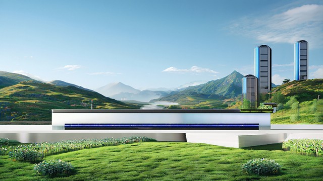 自然美景与高科技元素和谐共存,反映出现代人对于科技与环境保护并重的价值观。