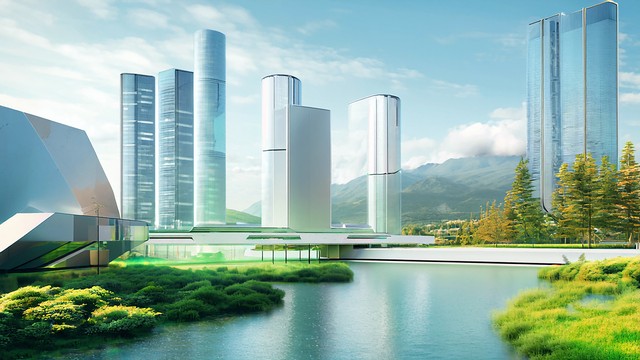 自然美景与高科技元素和谐共存,反映出现代人对于科技与环境保护并重的价值观。