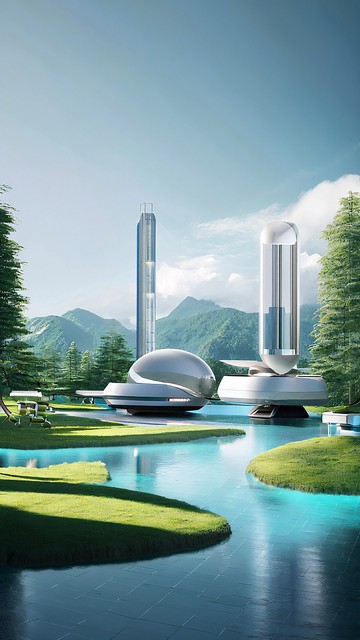 自然美景与高科技元素和谐共存,反映出现代人对于科技与环境保护并重的价值观。
