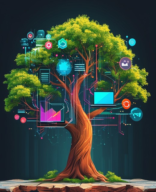 树技术标志模板。创新的数字技术概念商业图标。矢量插图。