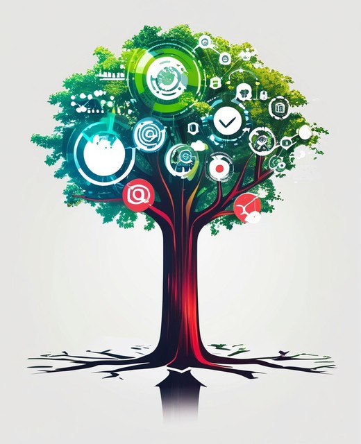 树技术标志模板。创新的数字技术概念商业图标。矢量插图。