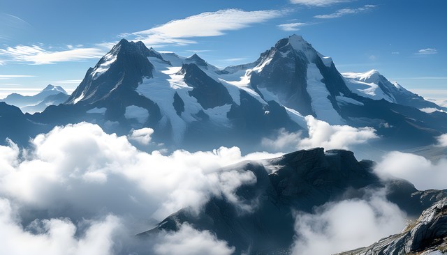 壮丽的雪山与云彩交织的自然风光,展现出大自然的雄伟与宁静。