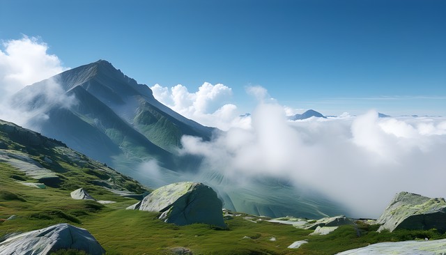 壮丽的雪山与云彩交织的自然风光,展现出大自然的雄伟与宁静。