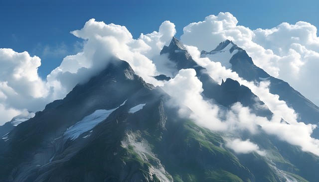 壮丽的雪山与云彩交织的自然风光,展现出大自然的雄伟与宁静。