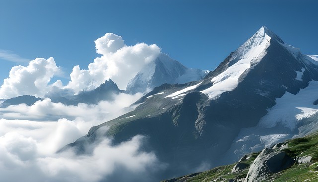 壮丽的雪山与云彩交织的自然风光,展现出大自然的雄伟与宁静。