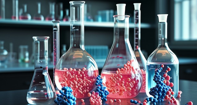 实验室玻璃器皿和脱氧核糖核酸数据。科学概念。