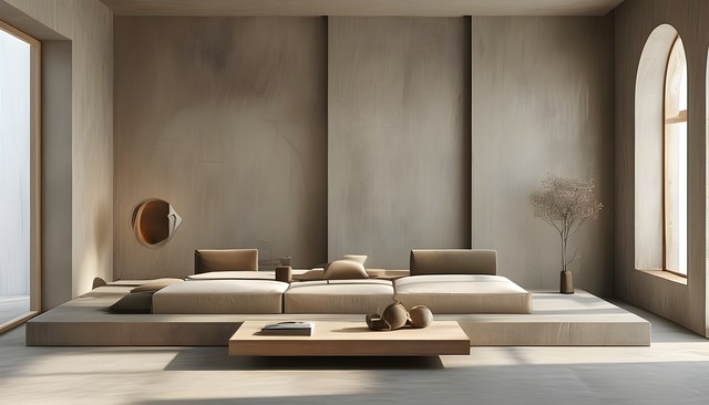 现代简约风格的室内设计,融合自然元素和简洁线条。