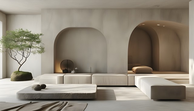 现代简约风格的室内设计,融合自然元素和简洁线条。